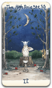 REVERSED: Secrets, disconnected from intuition, withdrawal and silence, Hidden things.