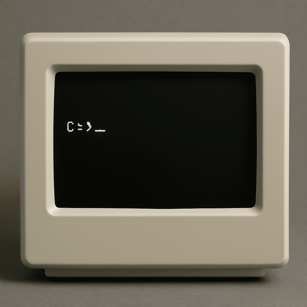 It’s a single-line DOS prompt—a narrow black screen with white blinking text.